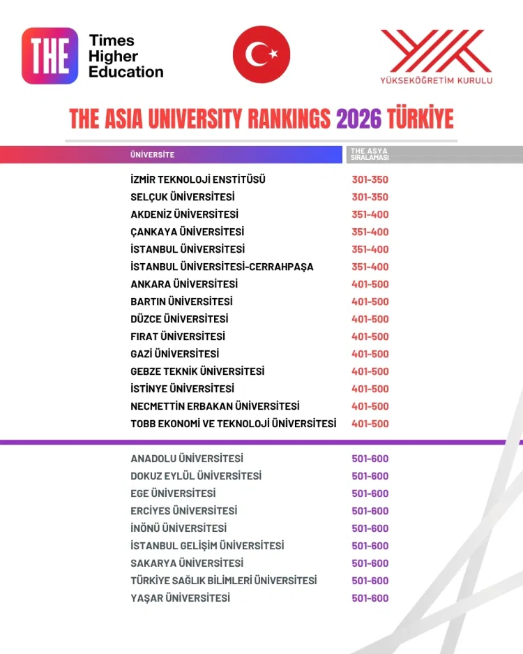 THE 2026 Asya sıralaması belli oldu... Türkiye ilk 3’te yer aldı
